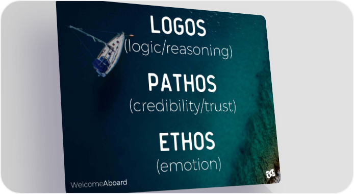 Logos (logic/reasoning) Pathos (credibility/trust) Ethos (emotion) WelcomeAboard Welcome Email Page 10 Page 12